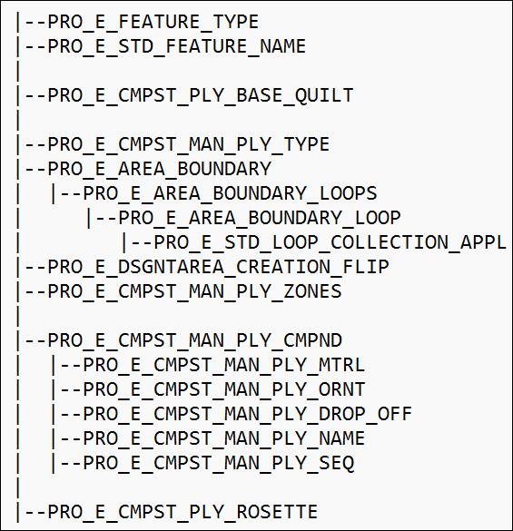 | • | PRO_E_CMPST_MAN_PLY_ZONES—Specifies the boundary zones. The valid value is PRO_QUILT for laminate zone feature. |